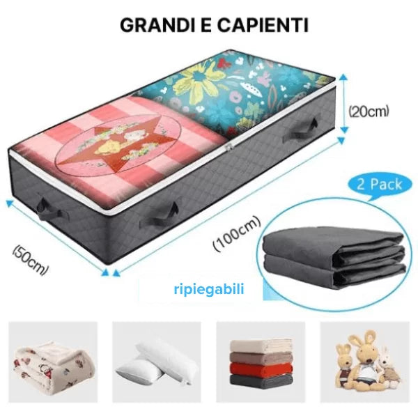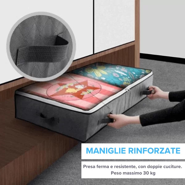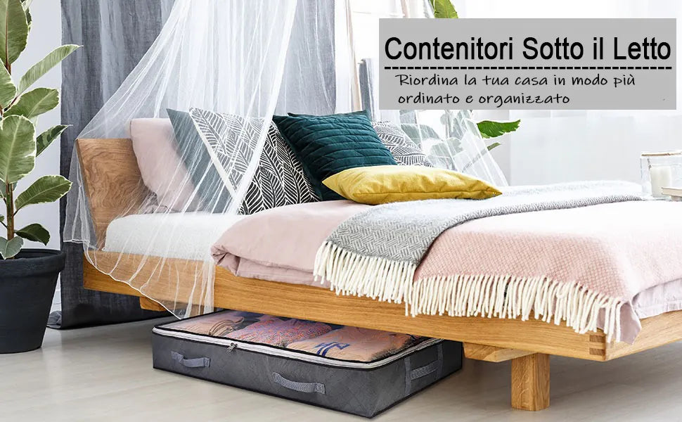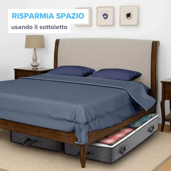 SALVASPAZIO: lo spazio sotto il letto è di solito inutilizzato. Grazie a questi contenitori potrai sfruttare il sottoletto sia per tenere in ordine i tuoi vestiti, sia per liberare spazio vitale dall'armadio. Sarà come creare spazio dal nulla!